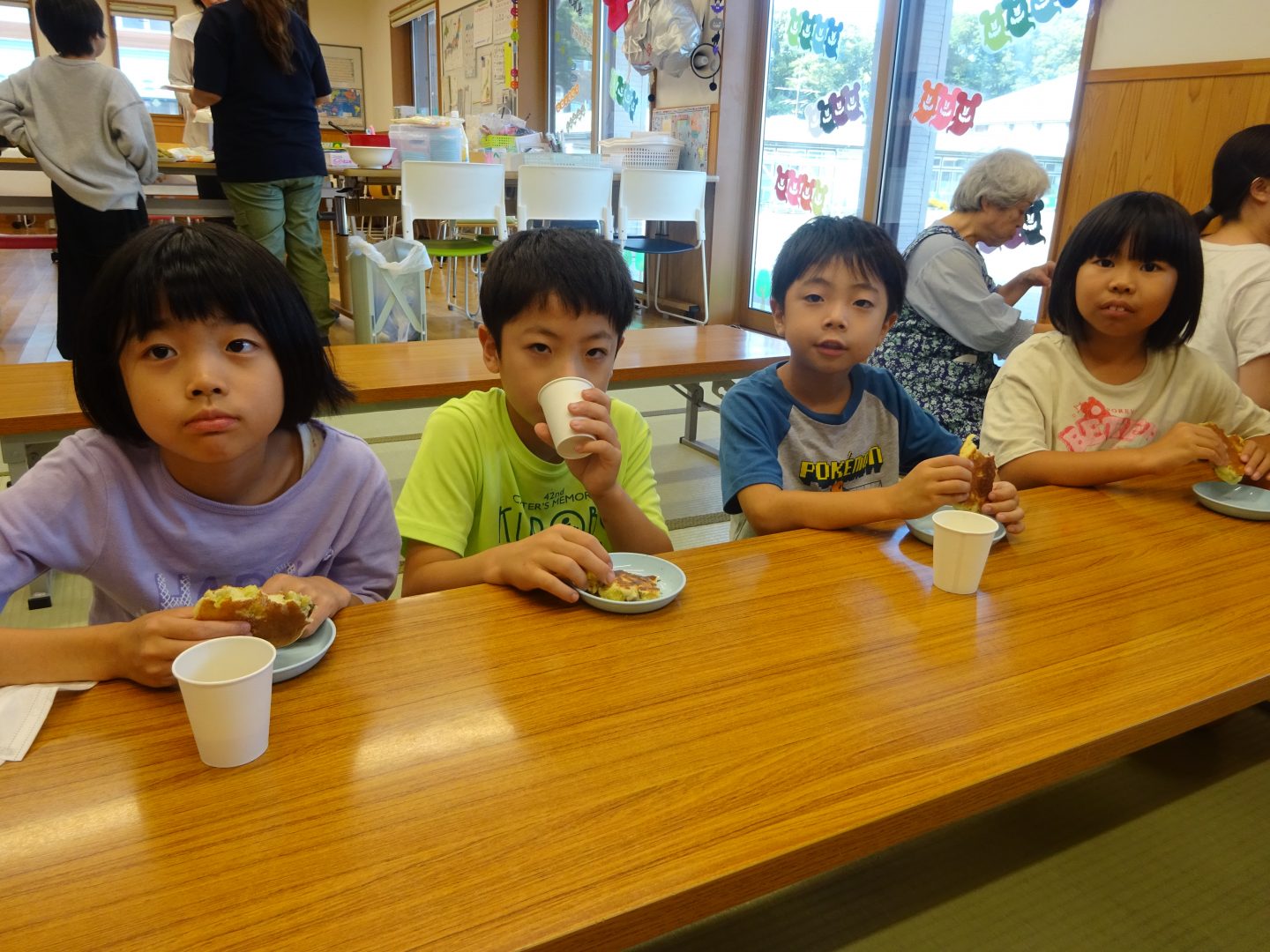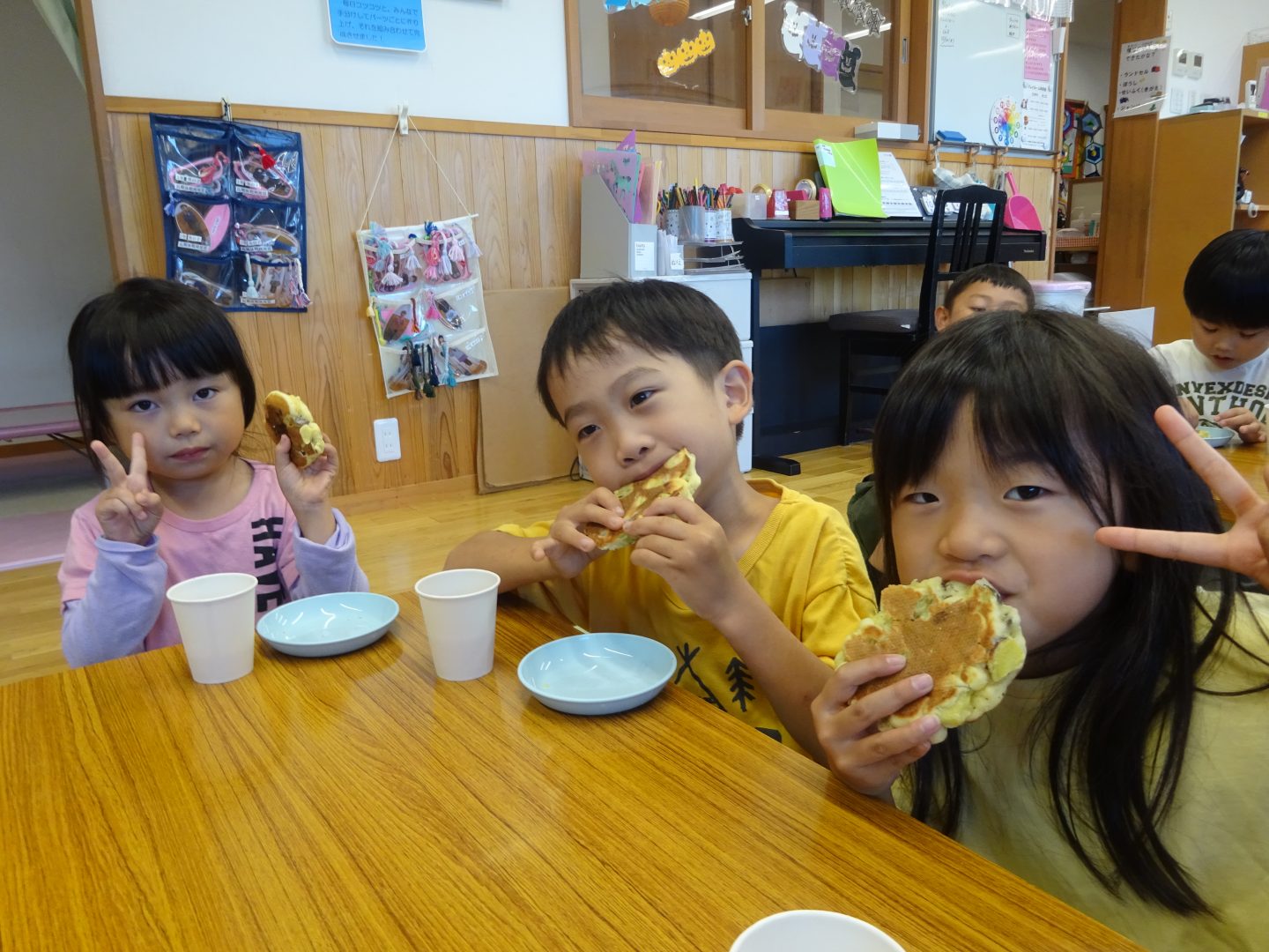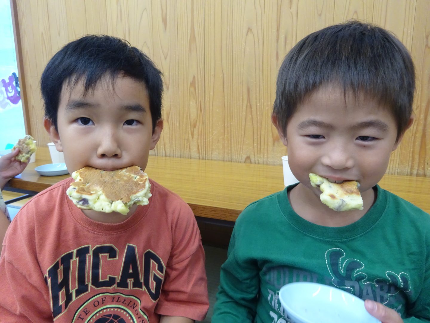 10月9日(木)、先日収穫した『さつまいも』を使って、さつまいものホットケーキを作り、おやつで食べました。
