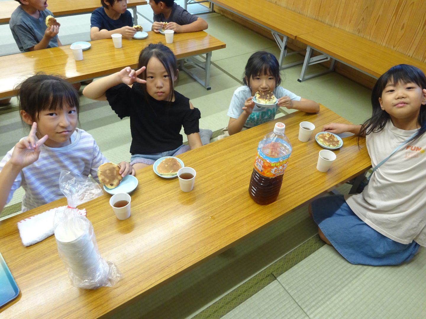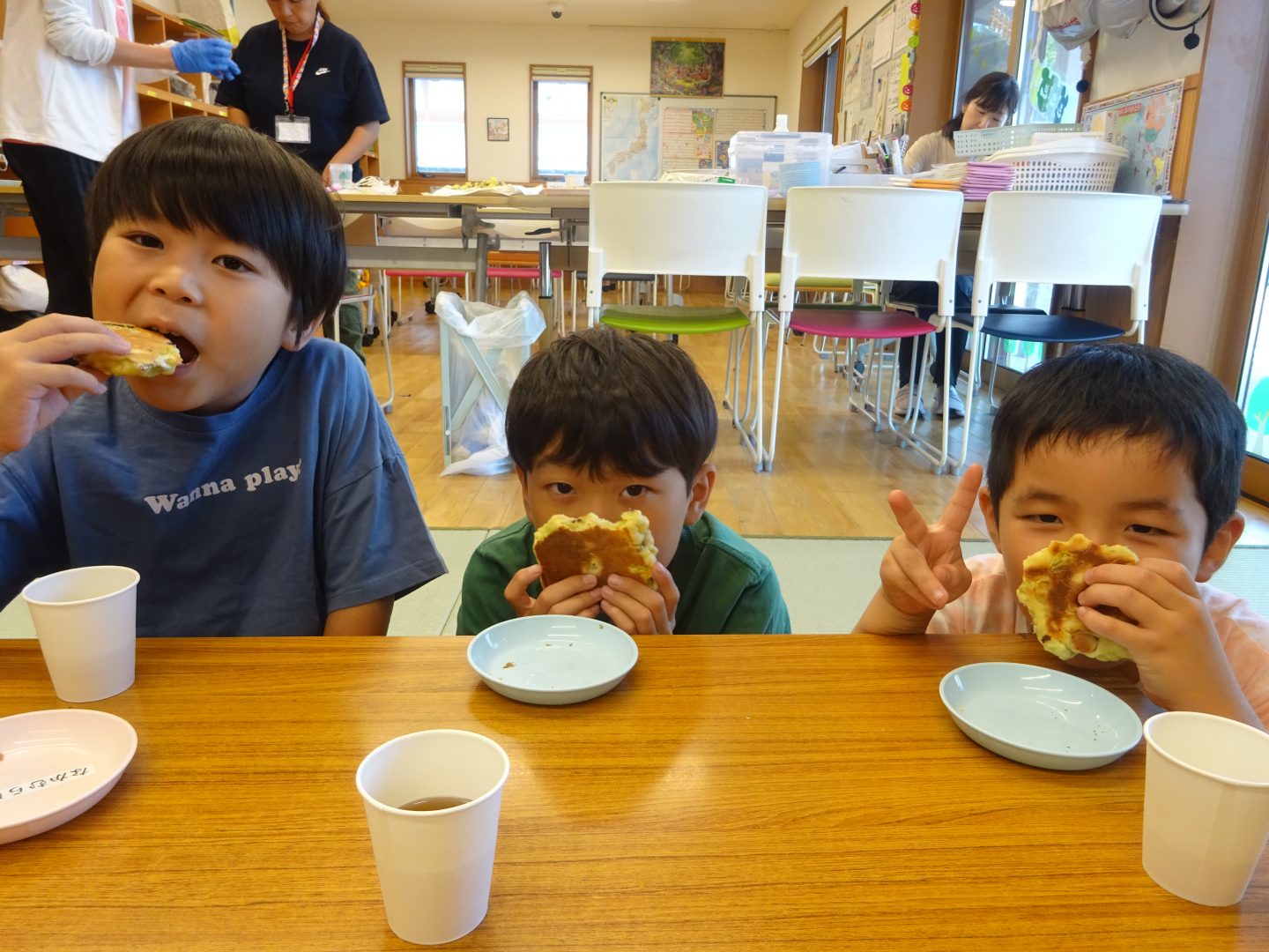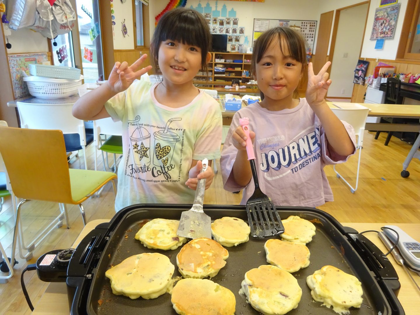 メンバーが学校から帰ってくると、「あ~、いいにおい!」「おなかすいてきた!」「先生、おかわりある?」と、焼きたてのホットケーキを食べ、とっても嬉しそうでした。