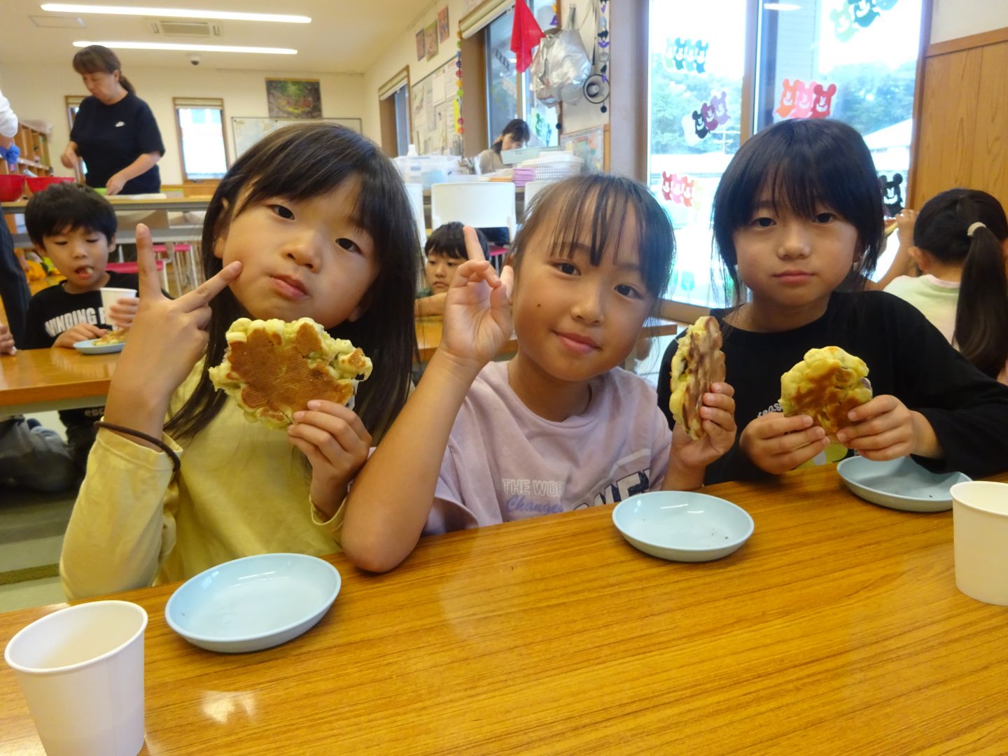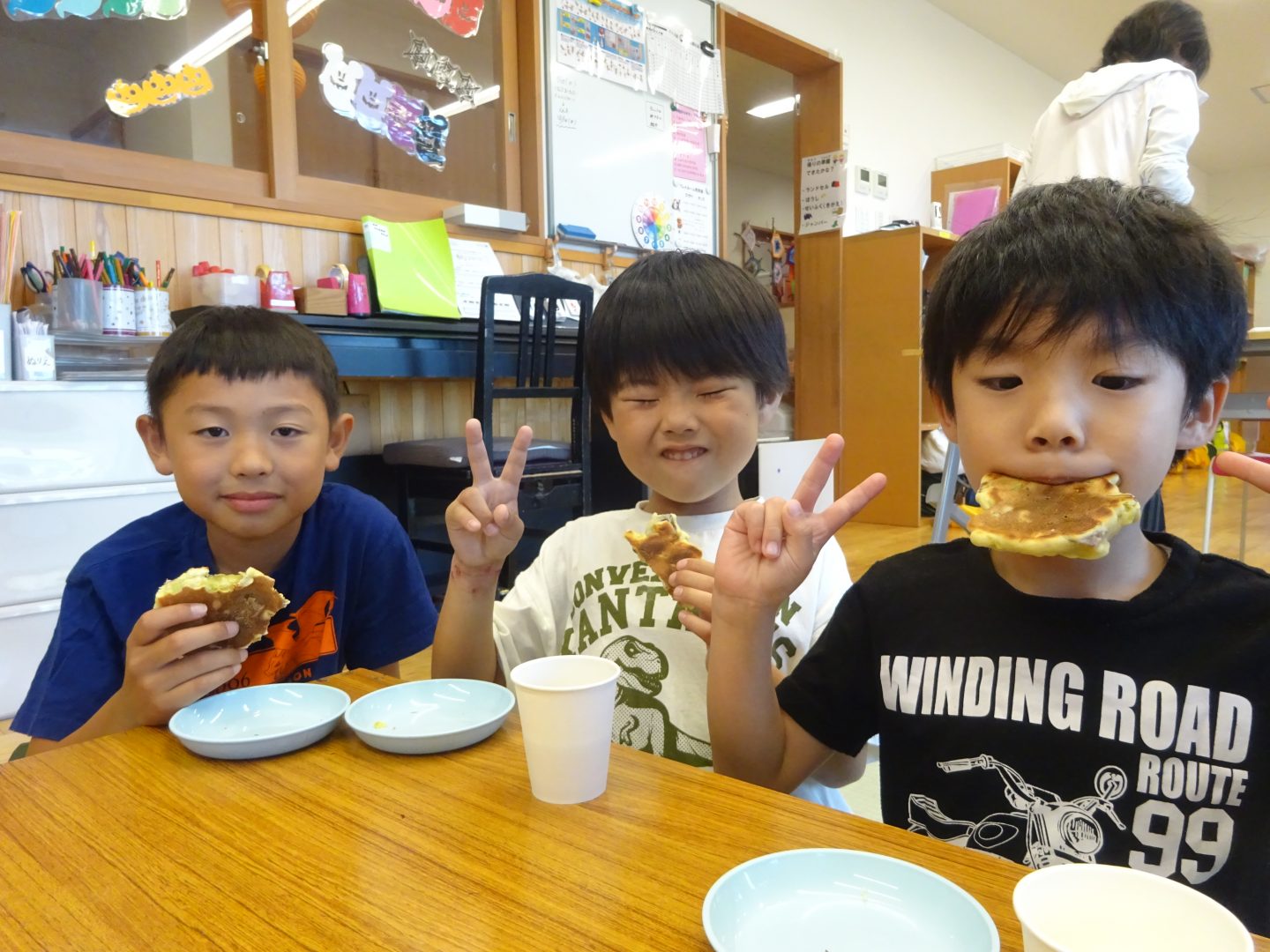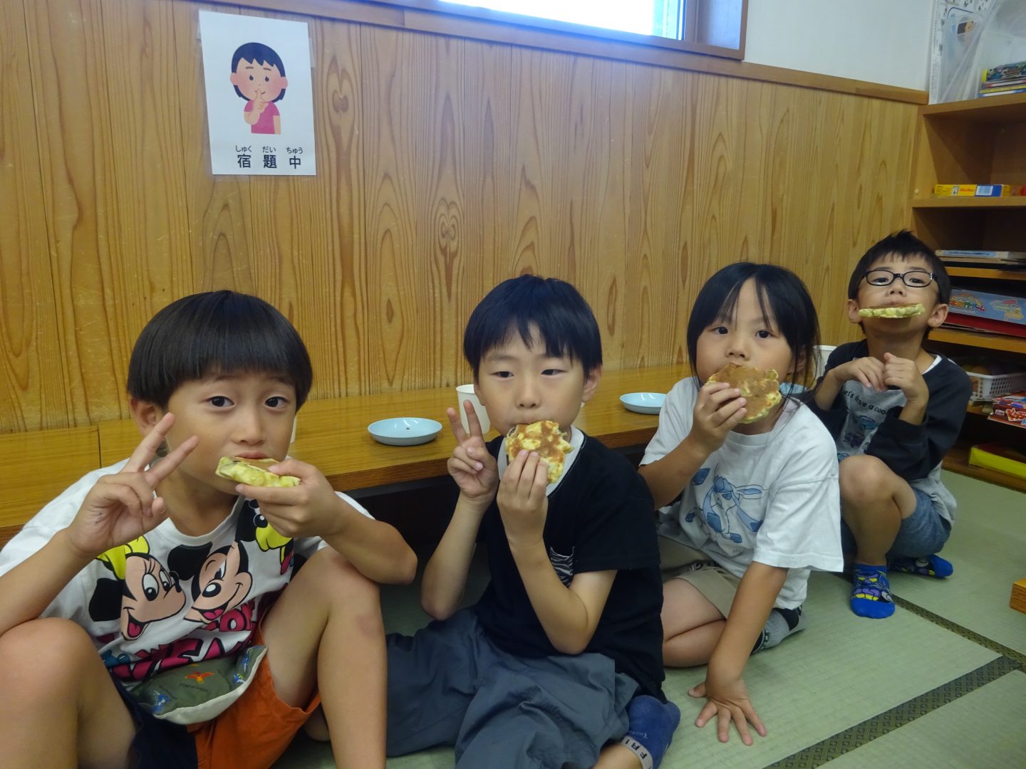 メンバーが学校から帰ってくると、「あ~、いいにおい!」「おなかすいてきた!」「先生、おかわりある?」と、焼きたてのホットケーキを食べ、とっても嬉しそうでした。