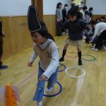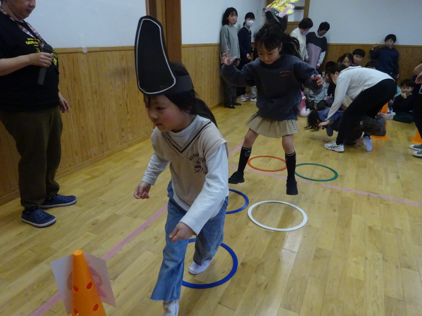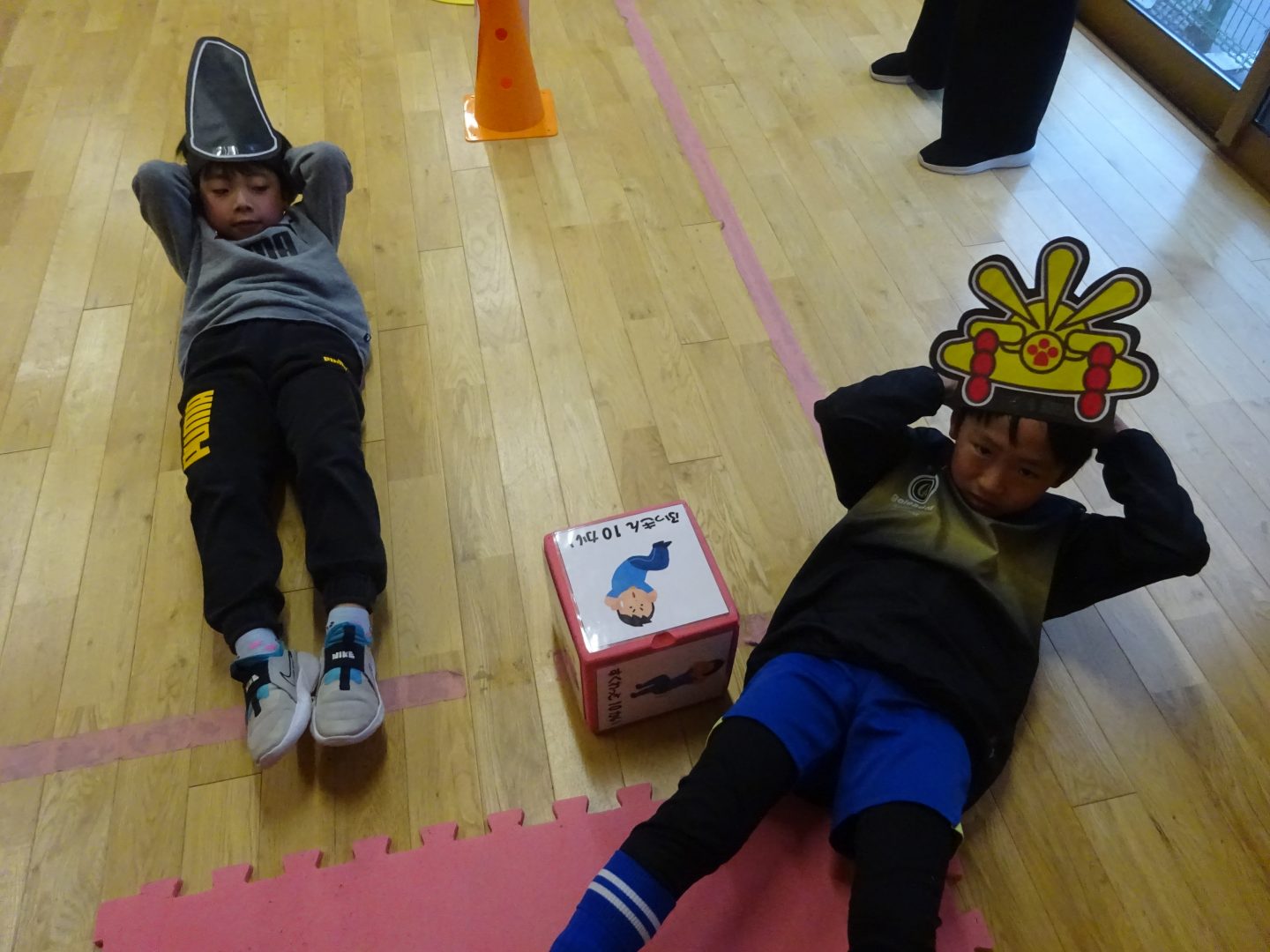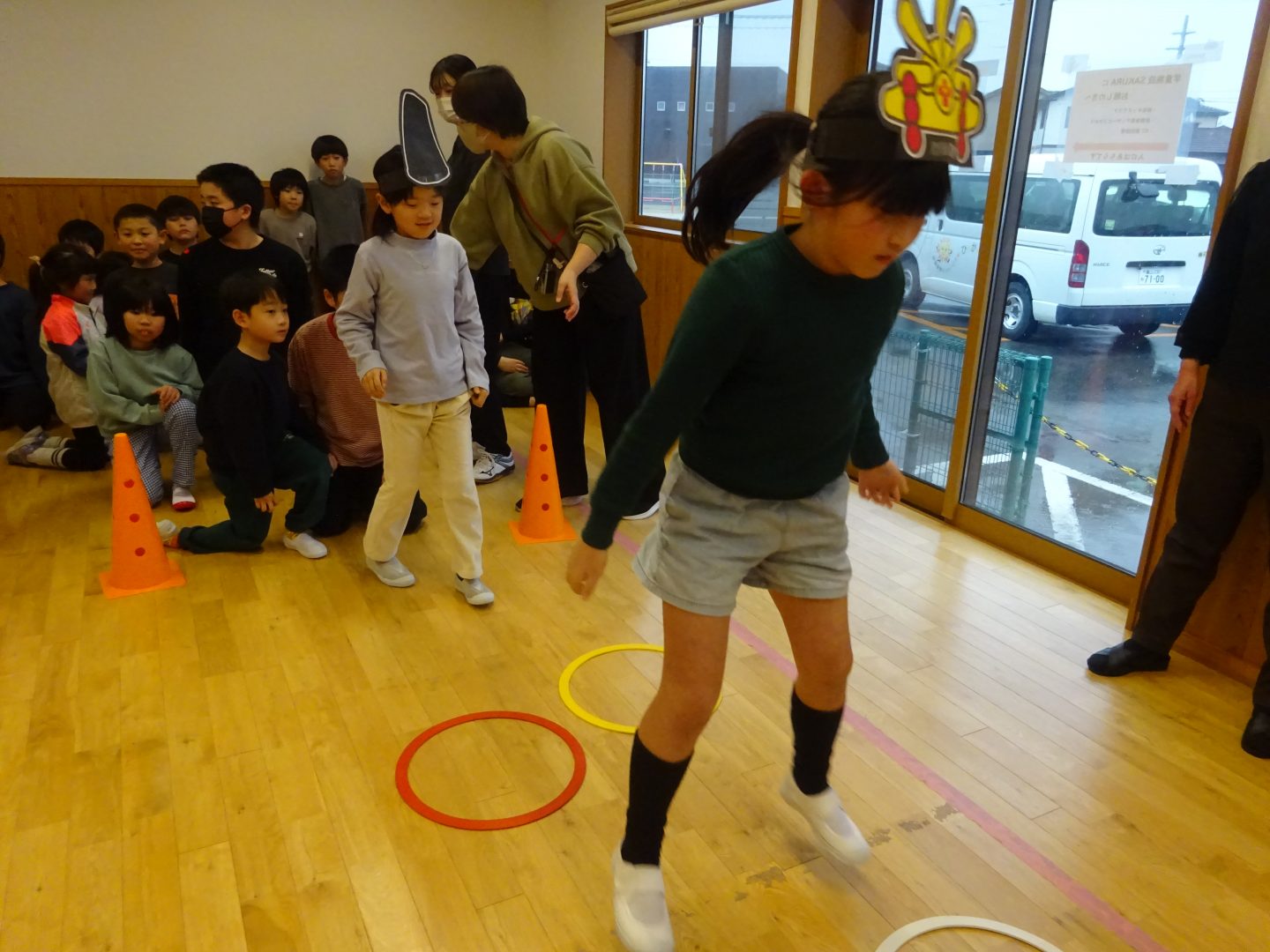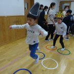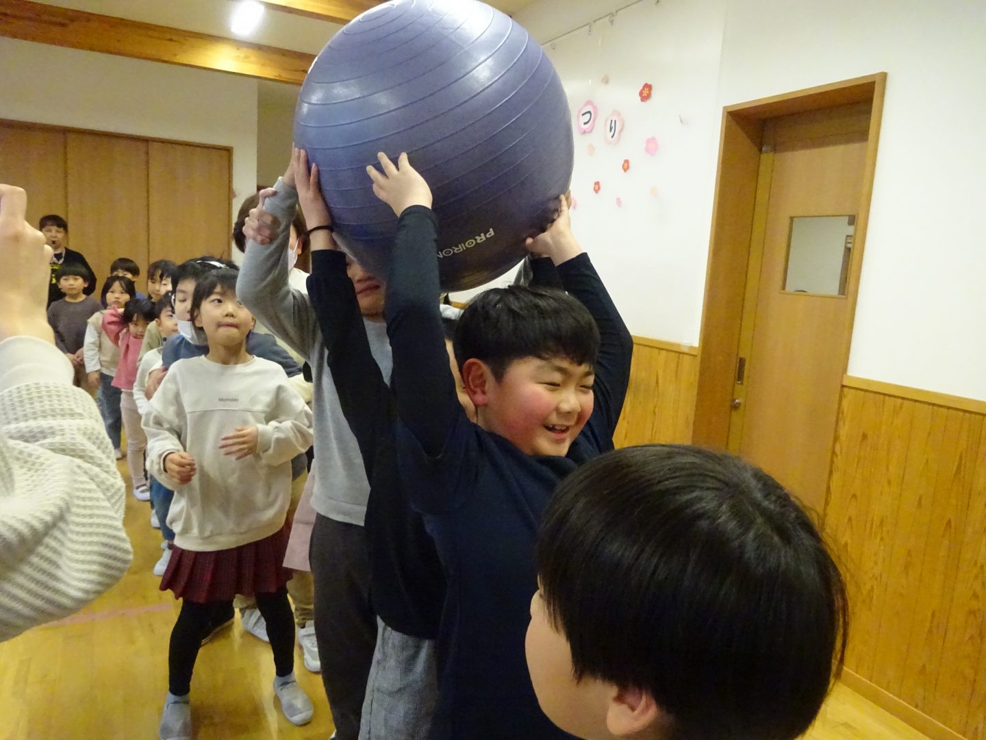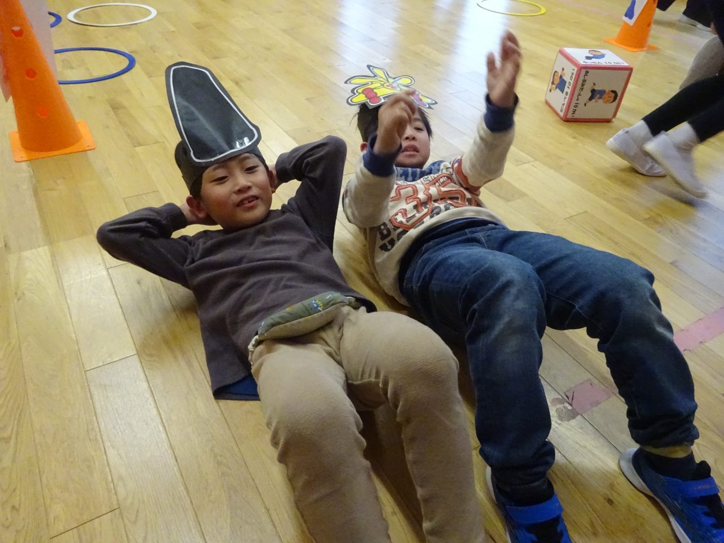3月3日(火)ひかりのお友達と一緒にひなまつり会を開催しました。『ひなあられボール送りゲーム』や、お内裏様やお雛様に変装して『ひなまつり筋トレリレー』を、楽しみました。スクワットやダンベルを持ち上げ、『お腹プルプルしてきた!』、『あと、5回!』等と、楽しい会話が聞こえてきました。仲間の応援にも力が入っていました。