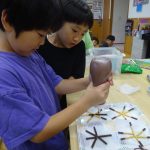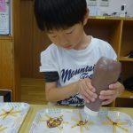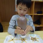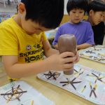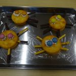 10月20日(月)みんなが楽しみにしていた、”HALLOWEEN”のクッキングをしました。今年は、2種類のデコレーションに挑戦!一つは、クラッカーにポッキーをはさみ、スパイダー風に。もう一つは、ポッキーにチョコレートをかけて、冷蔵庫で冷やし、蜘蛛の巣風に。それぞれの個性で、色々な雰囲気のスパイダーや蜘蛛の巣ができ、みんなは大満足!「かわいすぎて、食べるのもったいないな~」「家でも、作ってみたいな!」と、盛り上がっていました。