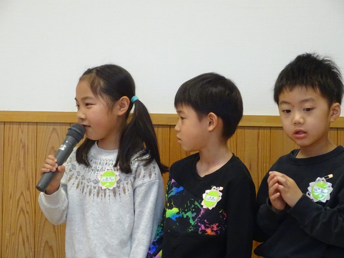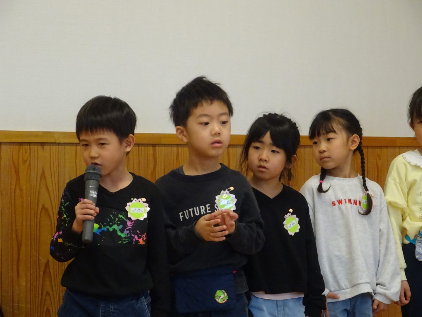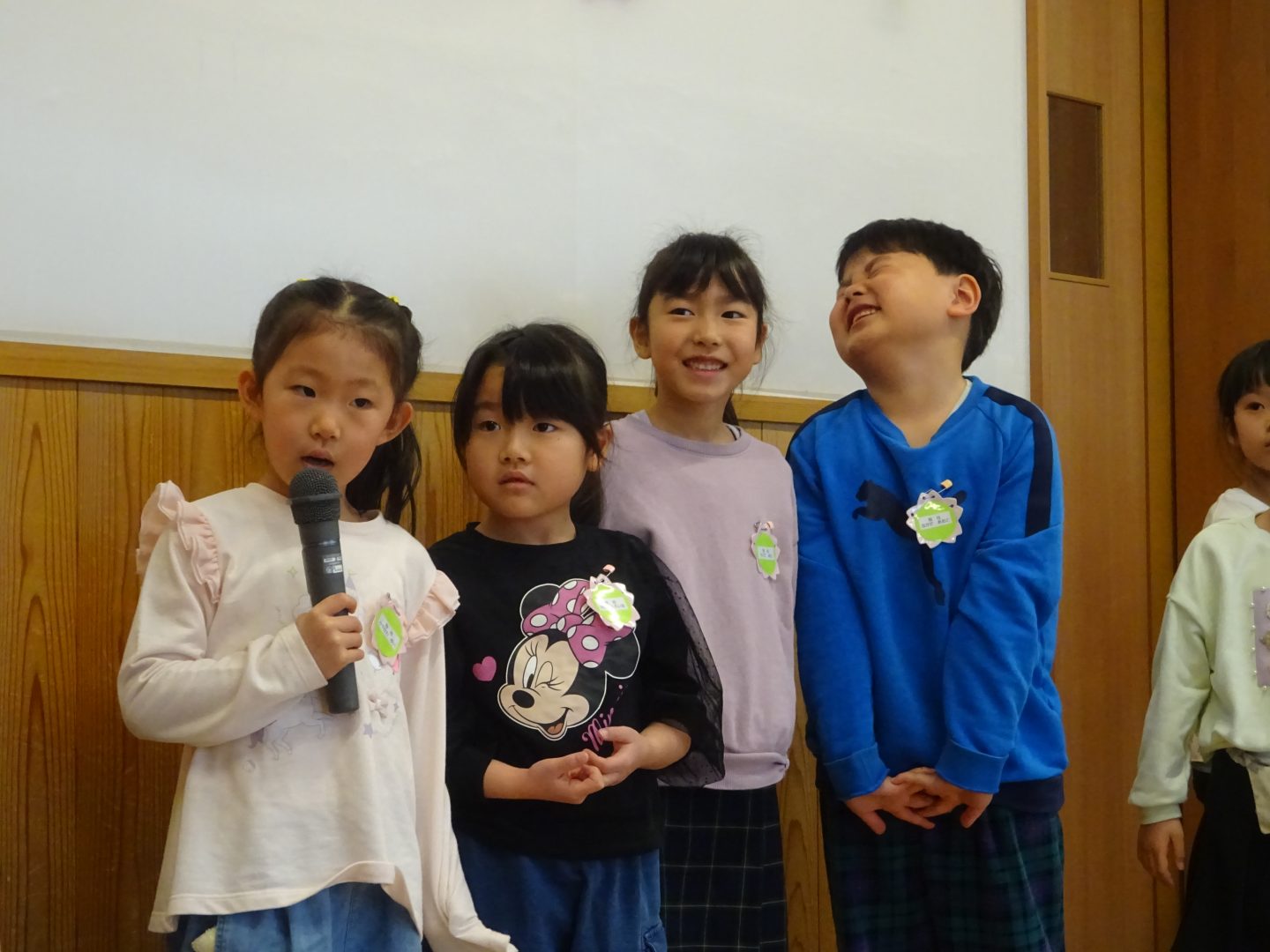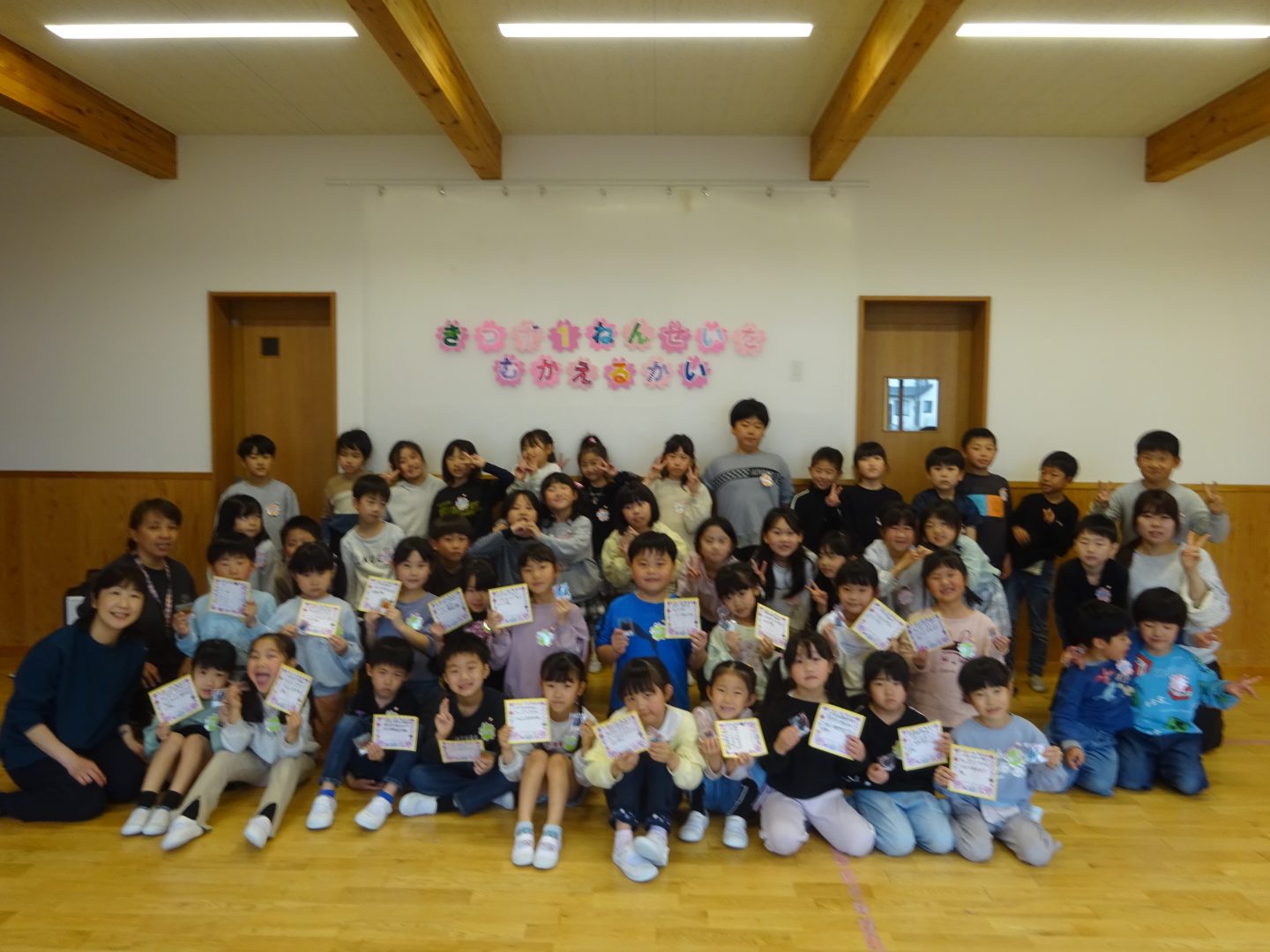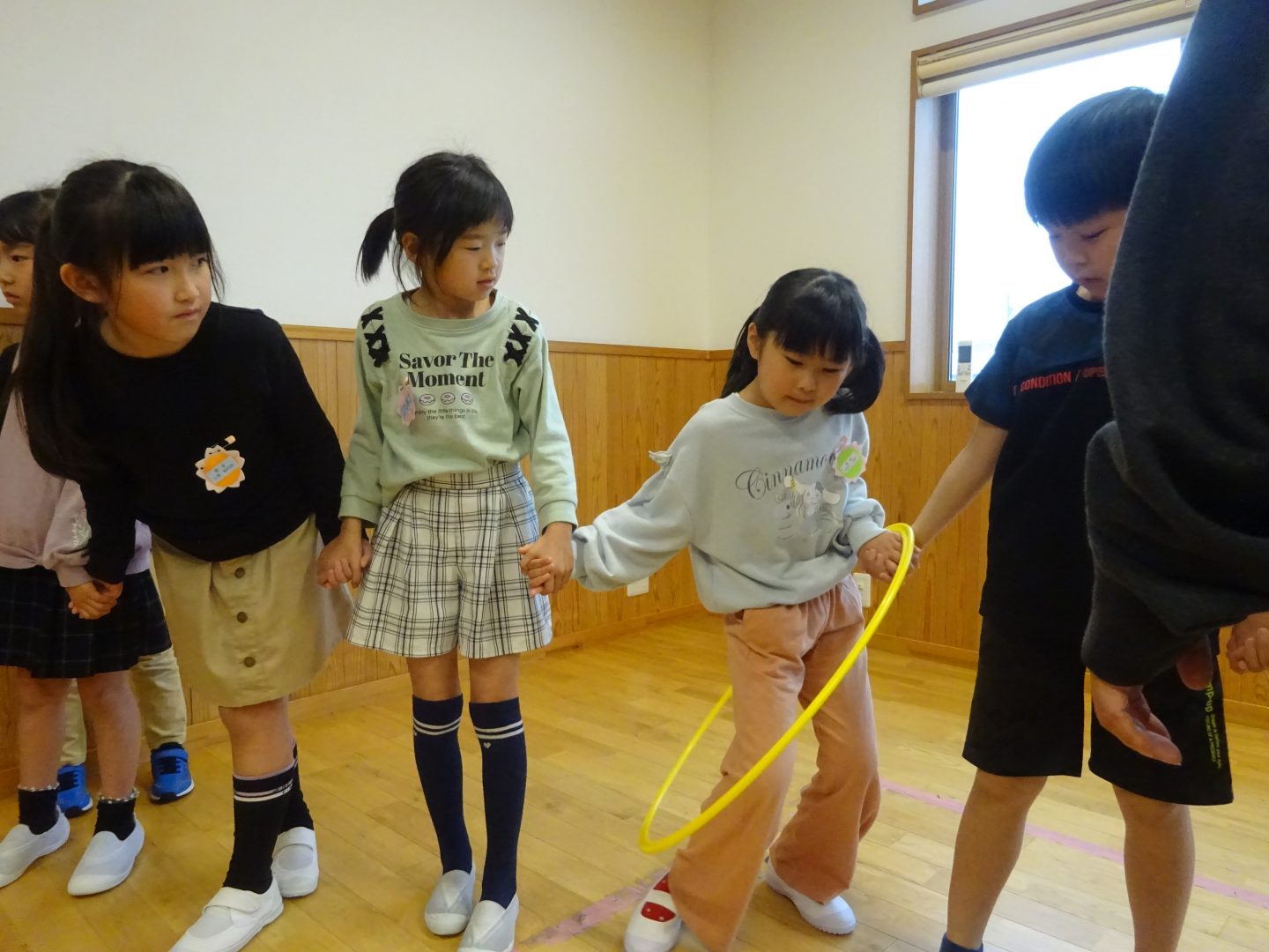 今日は『1年生を迎える会』を開催しました。3年生を中心に、企画・準備をしました。初司会にもドキドキしながら、大きな声で進行をつとめてくれました。1年生は、プレゼントや手紙をもらいとっても嬉しそうでした。また、一緒に『パタパタゲーム』『椅子取りゲーム』『フープくぐり』なども楽しみました。「こっち、あいてるよ!」「負けて、くやしかったね!」と、寄り添ってくれる上級生の優しい姿もみられました。
