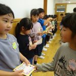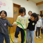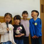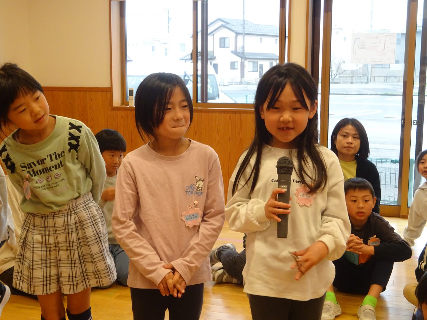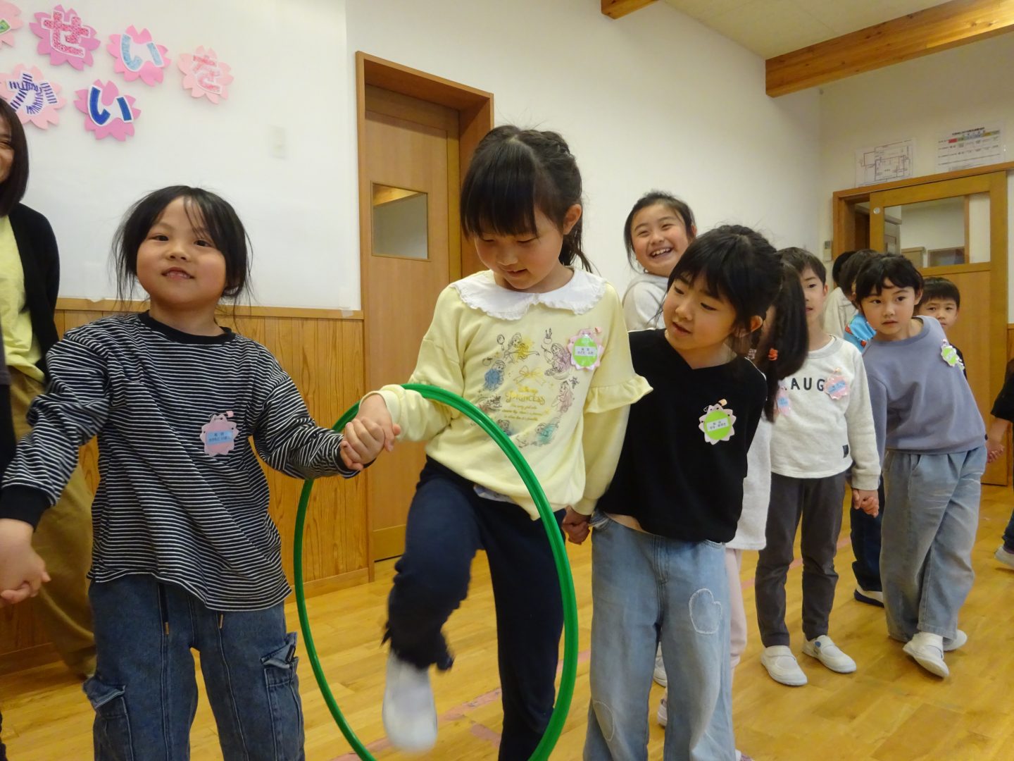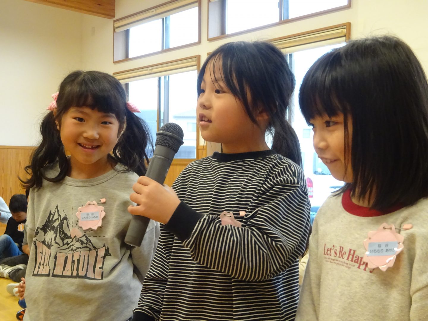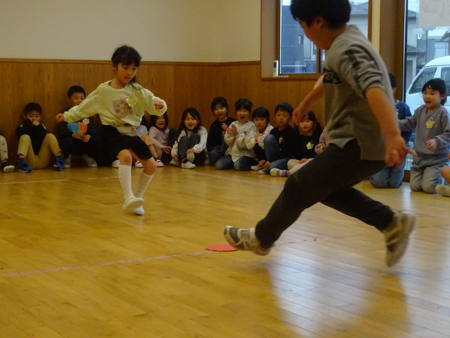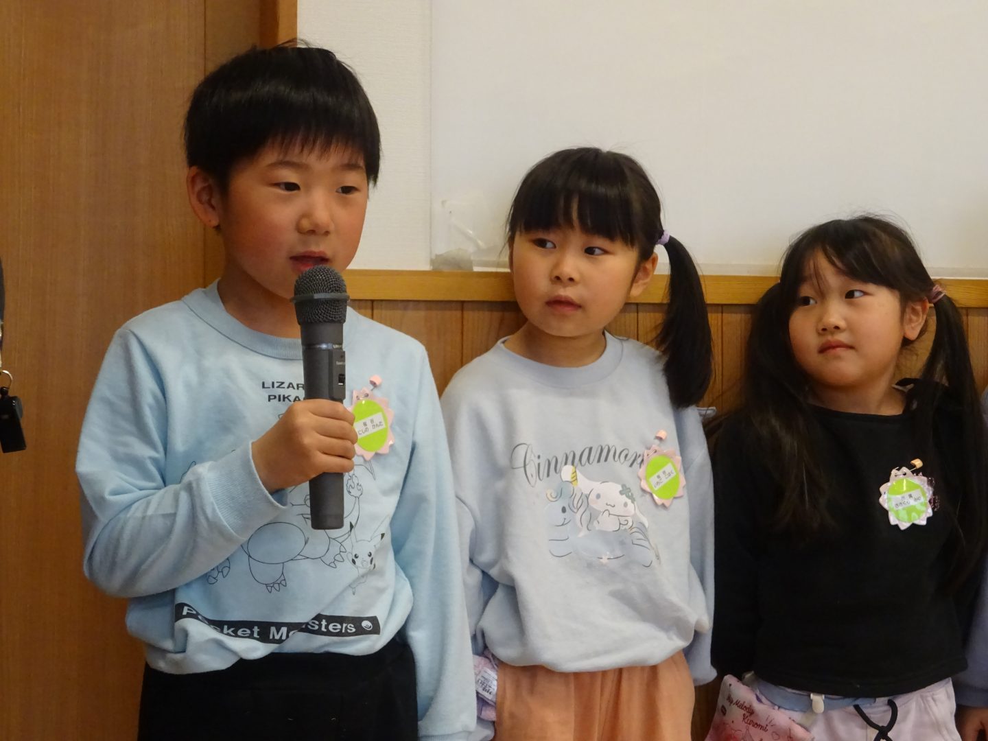 今日は『1年生を迎える会』を開催しました。3年生を中心に、企画・準備をしました。初司会にもドキドキしながら、大きな声で進行をつとめてくれました。1年生は、プレゼントや手紙をもらいとっても嬉しそうでした。また、一緒に『パタパタゲーム』『椅子取りゲーム』『フープくぐり』なども楽しみました。「こっち、あいてるよ!」「負けて、くやしかったね!」と、寄り添ってくれる上級生の優しい姿もみられました。